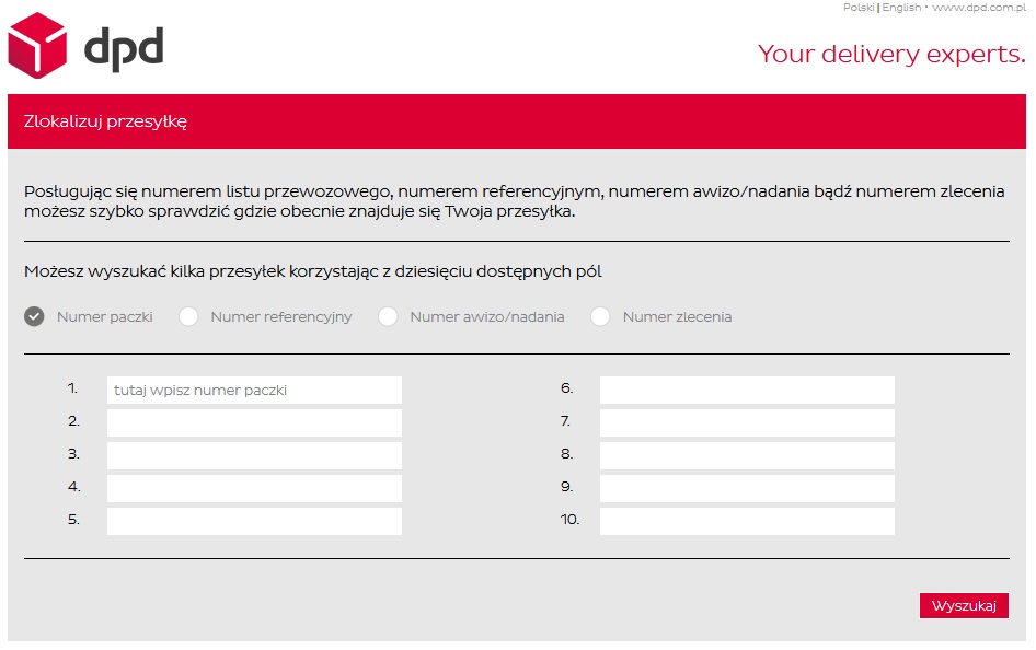 1. Śledzenie paczek kurier DPD - wejdź w link poniżej, wpisz numer paczki w polu nr 1 i kliknij "wyszukaj"
