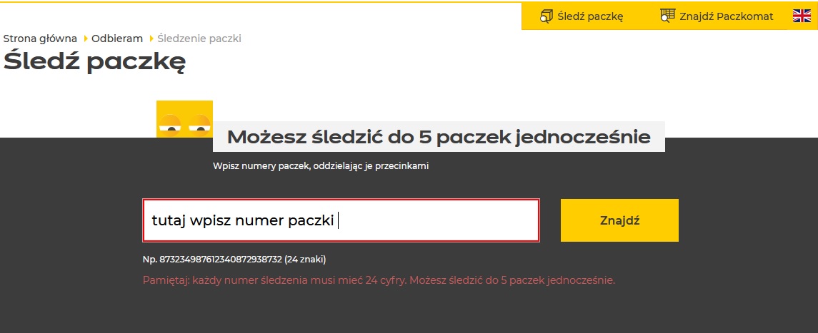 2. Śledzenie paczek paczkomaty InPost - wejdź w link poniżej, wpisz numer przesyłki i kliknij "znajdź"
